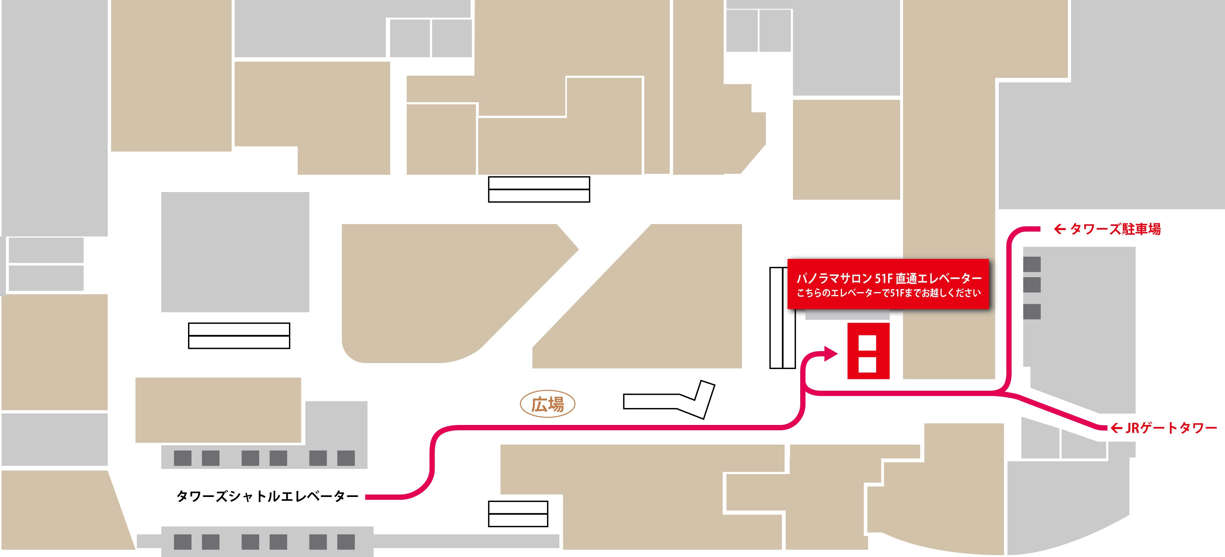 Please take the Towers Shuttle elevator to the 12th floor and use the "Panorama Salon 51F Direct Access Elevator".